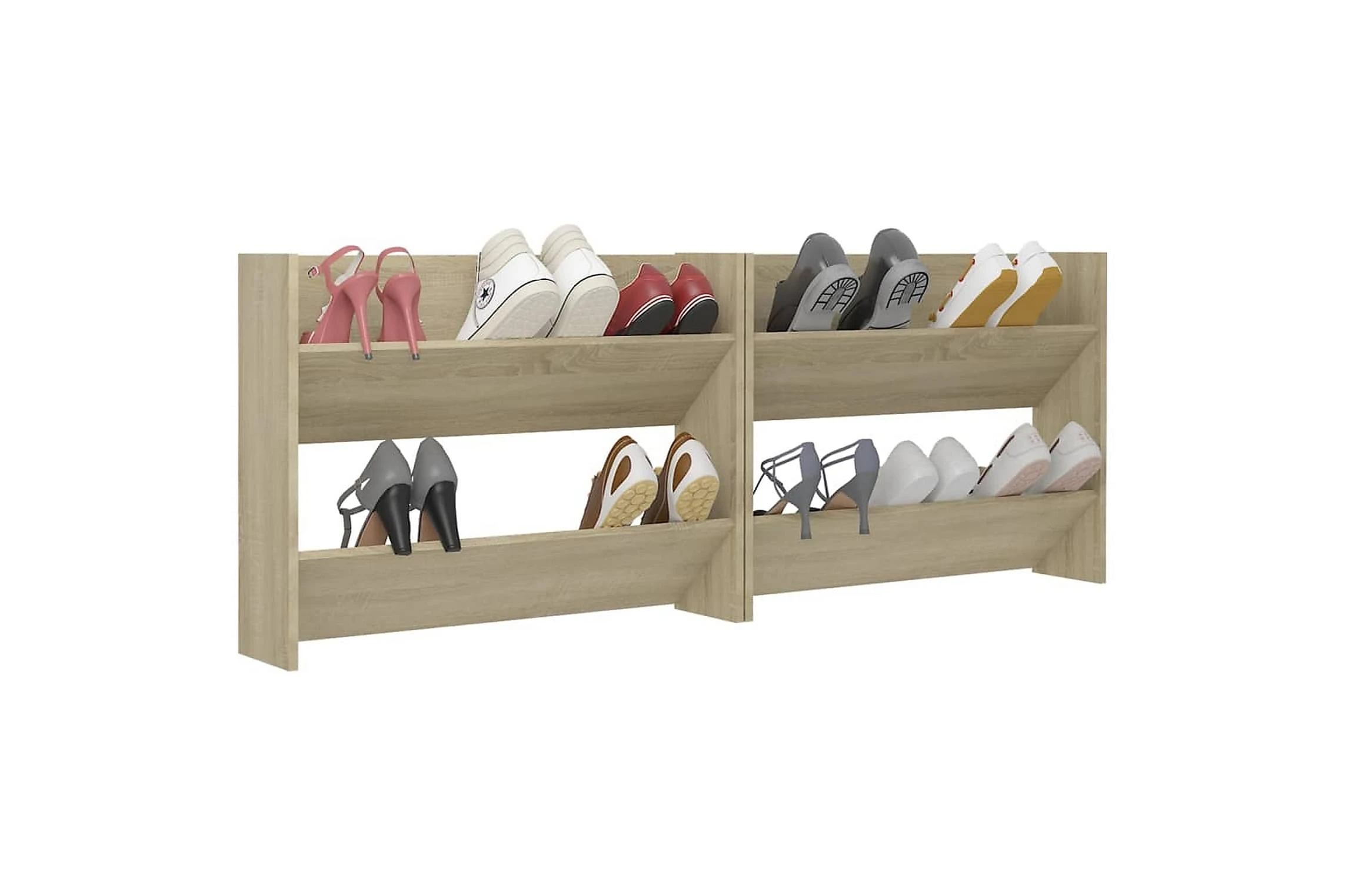 Skostället har 2 lutande hyllor för att förvara skor, stövlar och tofflor organiserat. Det är väggmonterat, vilket sparar plats och gör din hall organiserad och håller golvet rent. Det kan monteras i valfri höjd. Dessutom kan det enkelt torkas av med en fuktig trasa.