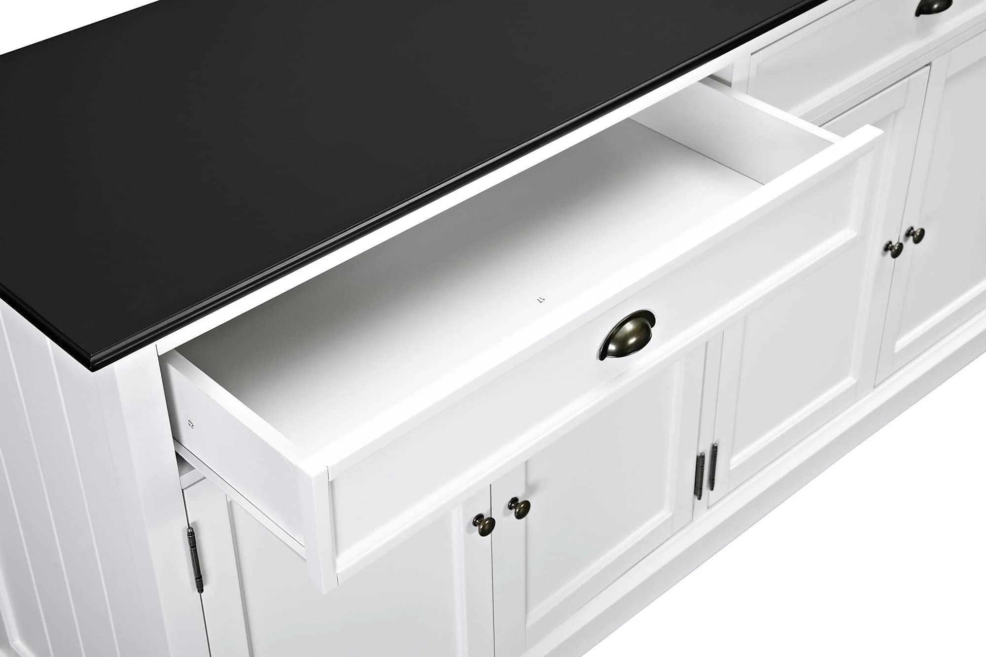 Hampton skänk är en vacker och praktisk möbel. Den är försedd med två skåp nertill och två lådor ovan. Skänken är väl genomtänkt, både vad gäller utseende och funktion. Den kommer definitivt att lysa upp rummet där den står, och ovanpå går det att dekorera med exempelvis krukväxter.