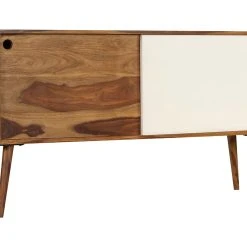 Denna träskänk har en stadig ovansida där du kan ställa dekorativa föremål som fruktkorgar eller vaser. Dess stora utrymme med skjutdörrar ger en ultimat lösning för att hålla dina prylar organiserade och ur sikt. Denna skänk är tillverkad av massivt sheshamträ och är hållbart och lättskött. Shesham är ett tropiskt lövträ som är känt för sina rika ådringar och kallas även rosenträ eller palisander. Dess vackra träådringar gör varje möbel unik och något annorlunda än nästa. De starka träbenen bidrar till en stadig konstruktion. Vår skänk är lätt att montera.