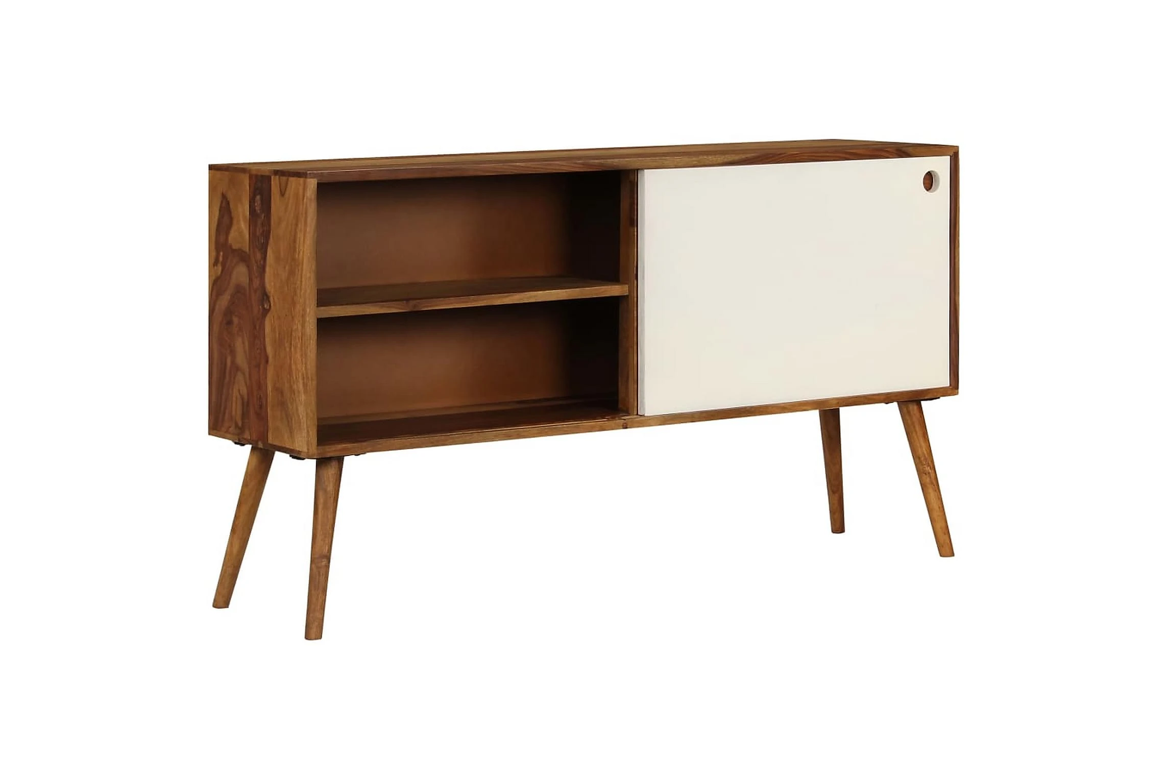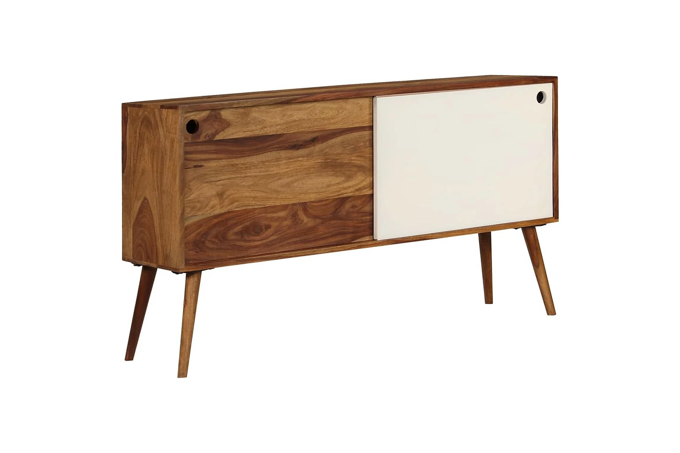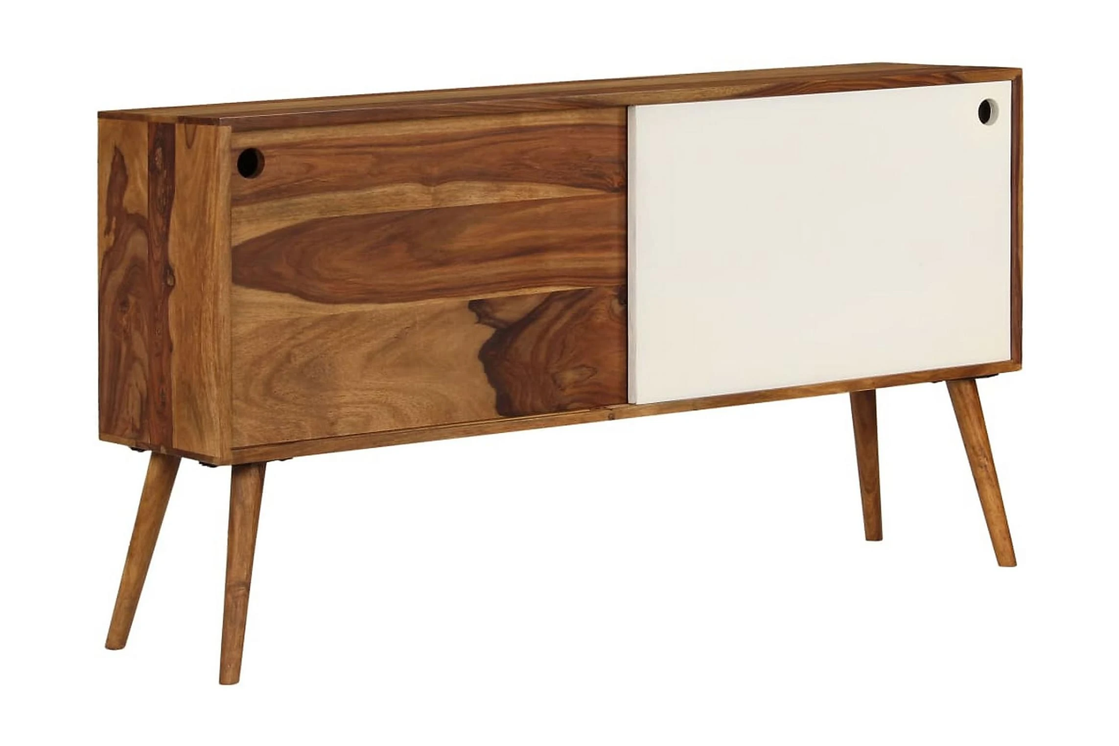 Denna skänk i massivt sheshamträ har en elegant design och blir ett blickfång i rummet.