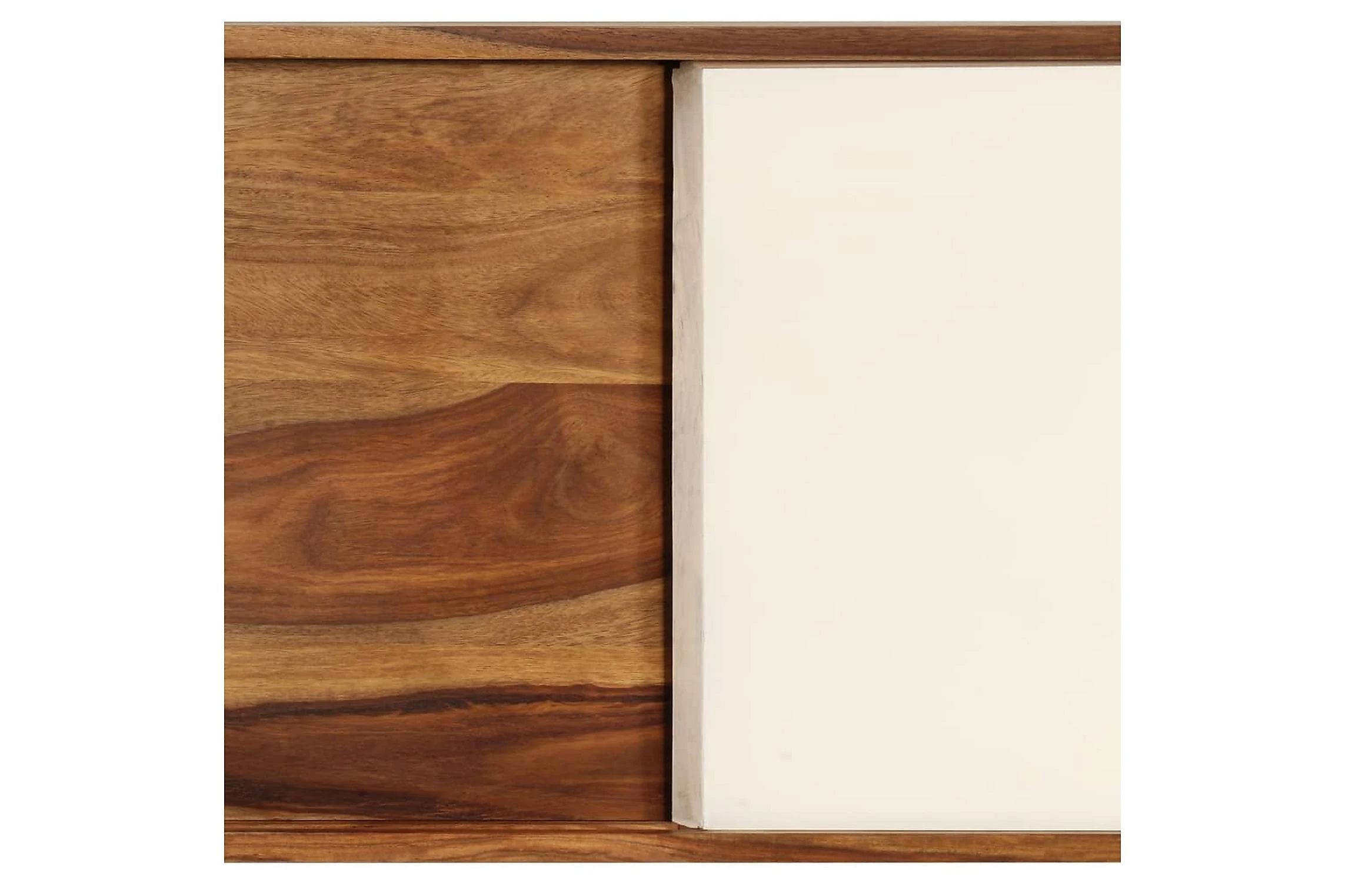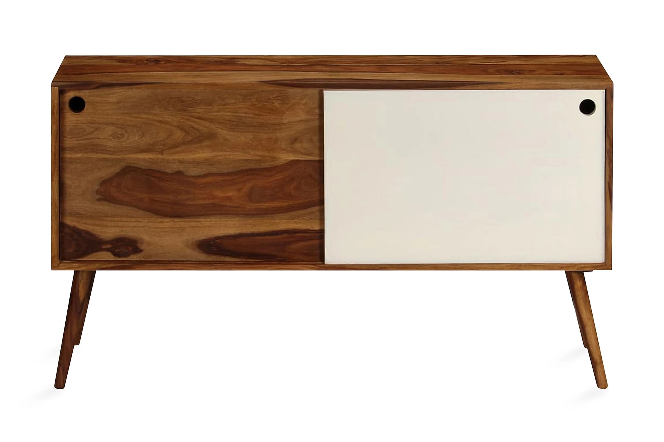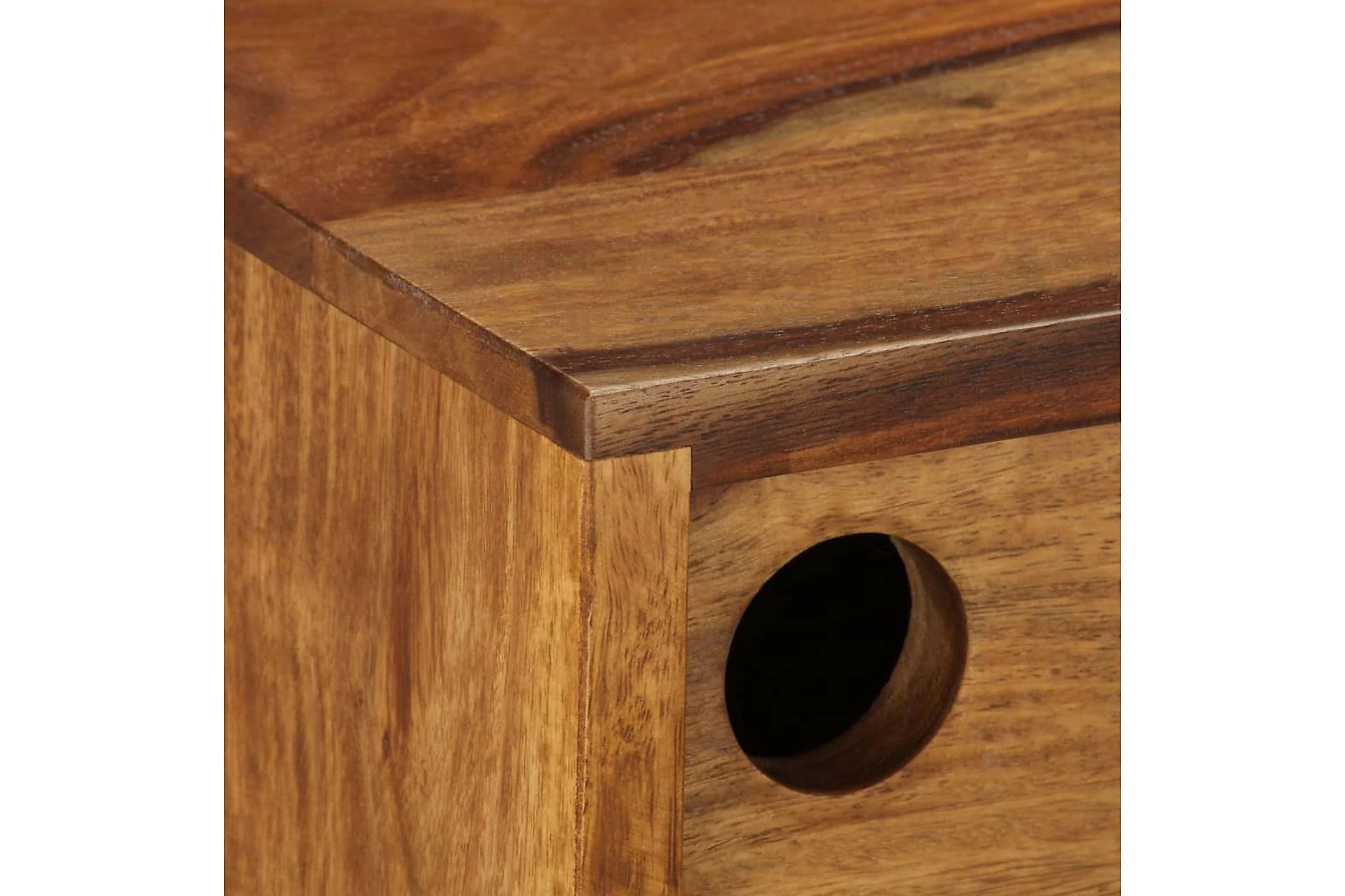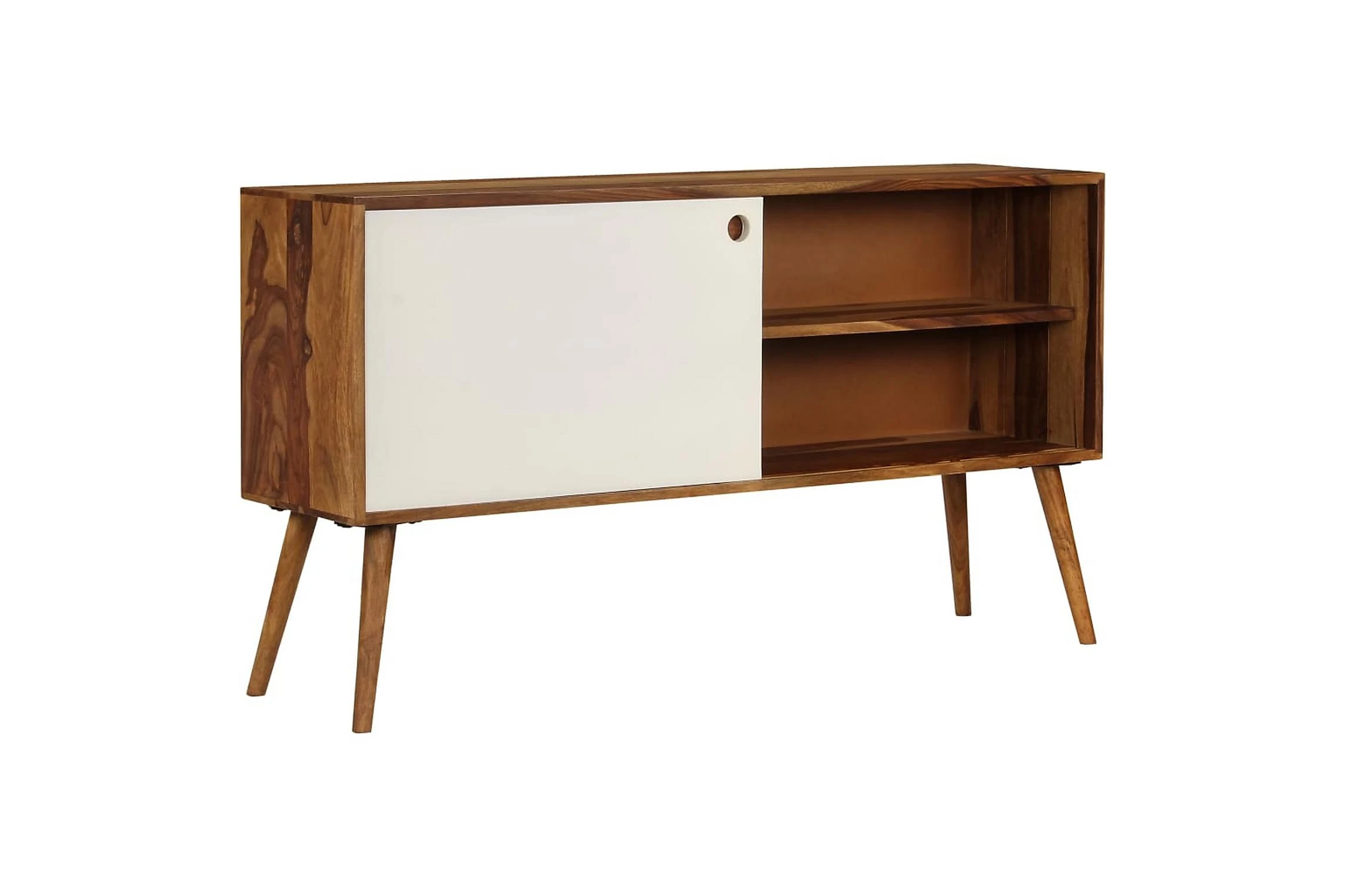 Denna skänk i massivt sheshamträ har en elegant design och blir ett blickfång i rummet.
