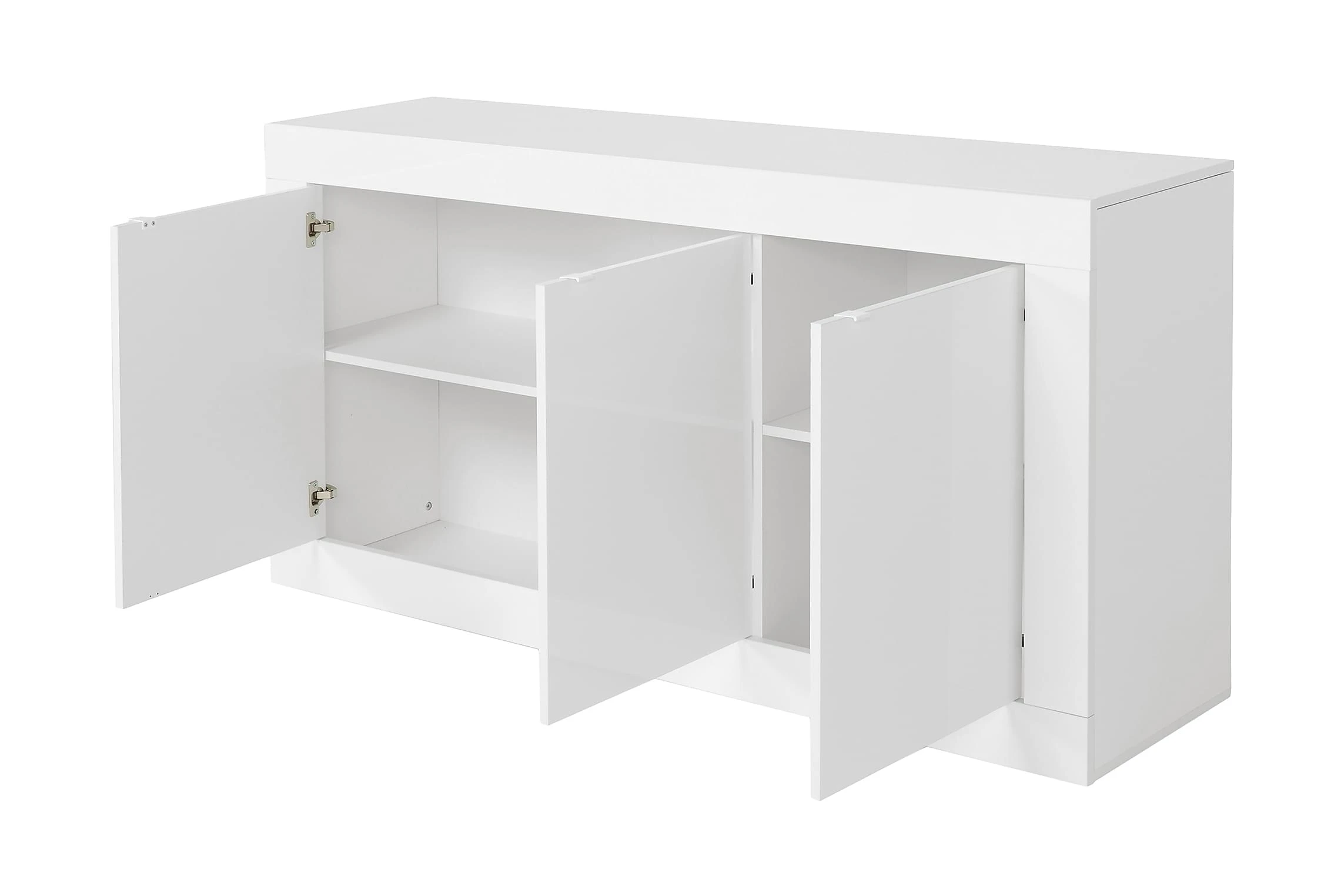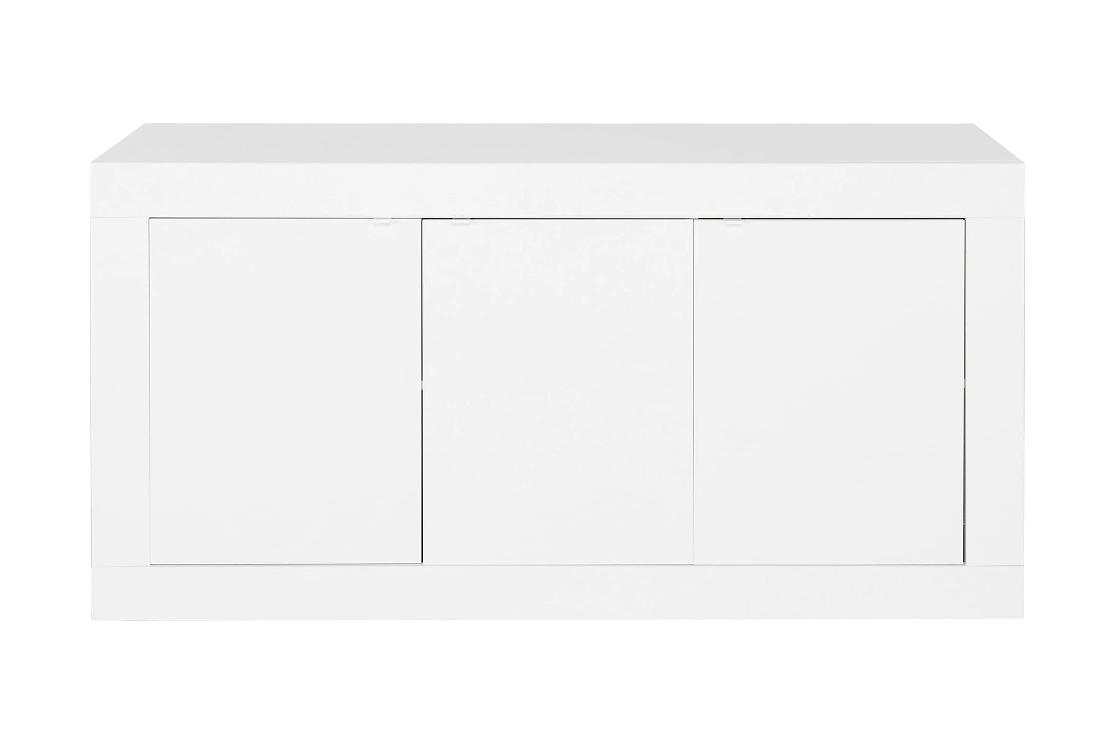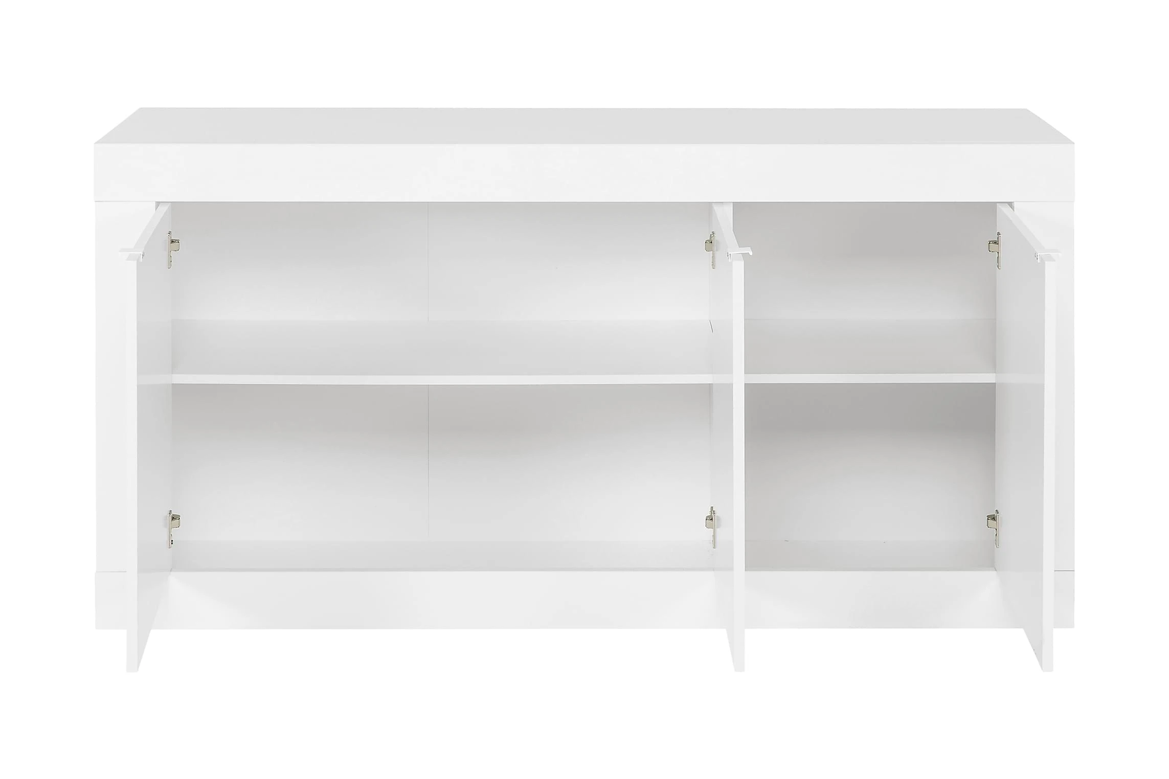 Astal sideboard i vit högglanslack har goda förvaringsmöjligheter med tre rymliga skåp. I varje skåp finns ett hyllplan med maxvikt på 10 kg. Dekorera gärna avlastningsytan med ljusstakar, blommor eller tavlor som extra inredningsdetaljer för rummet.