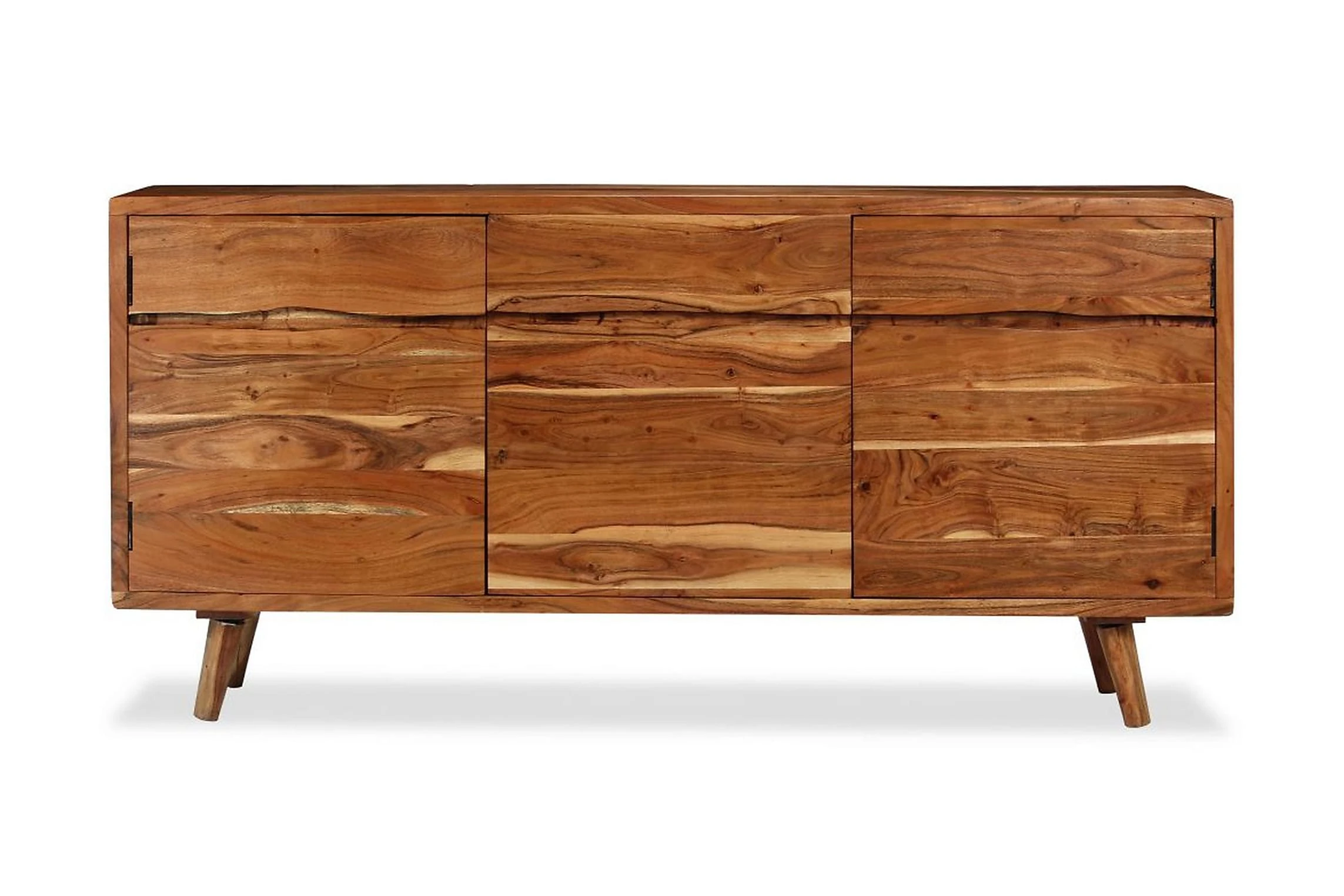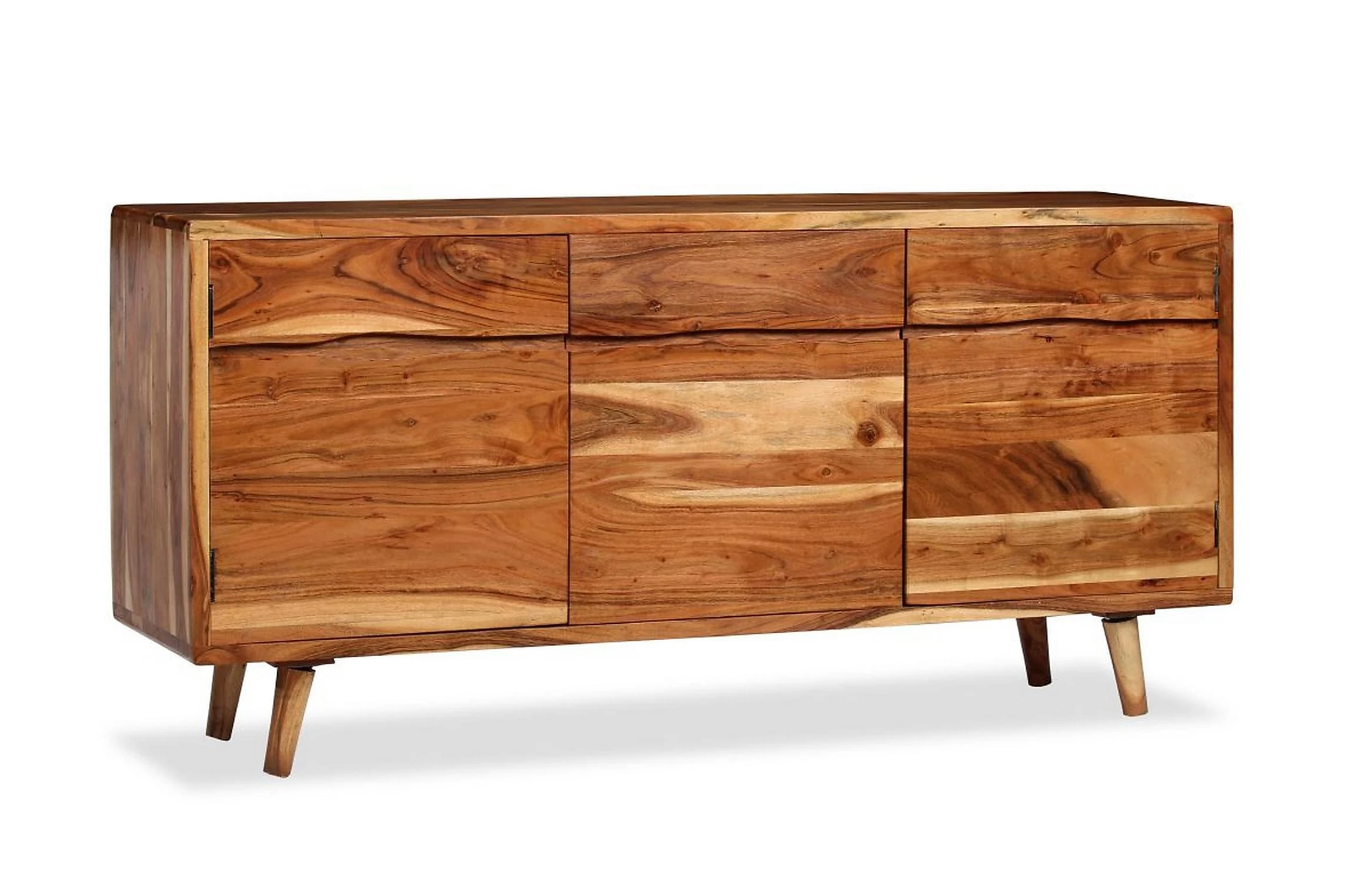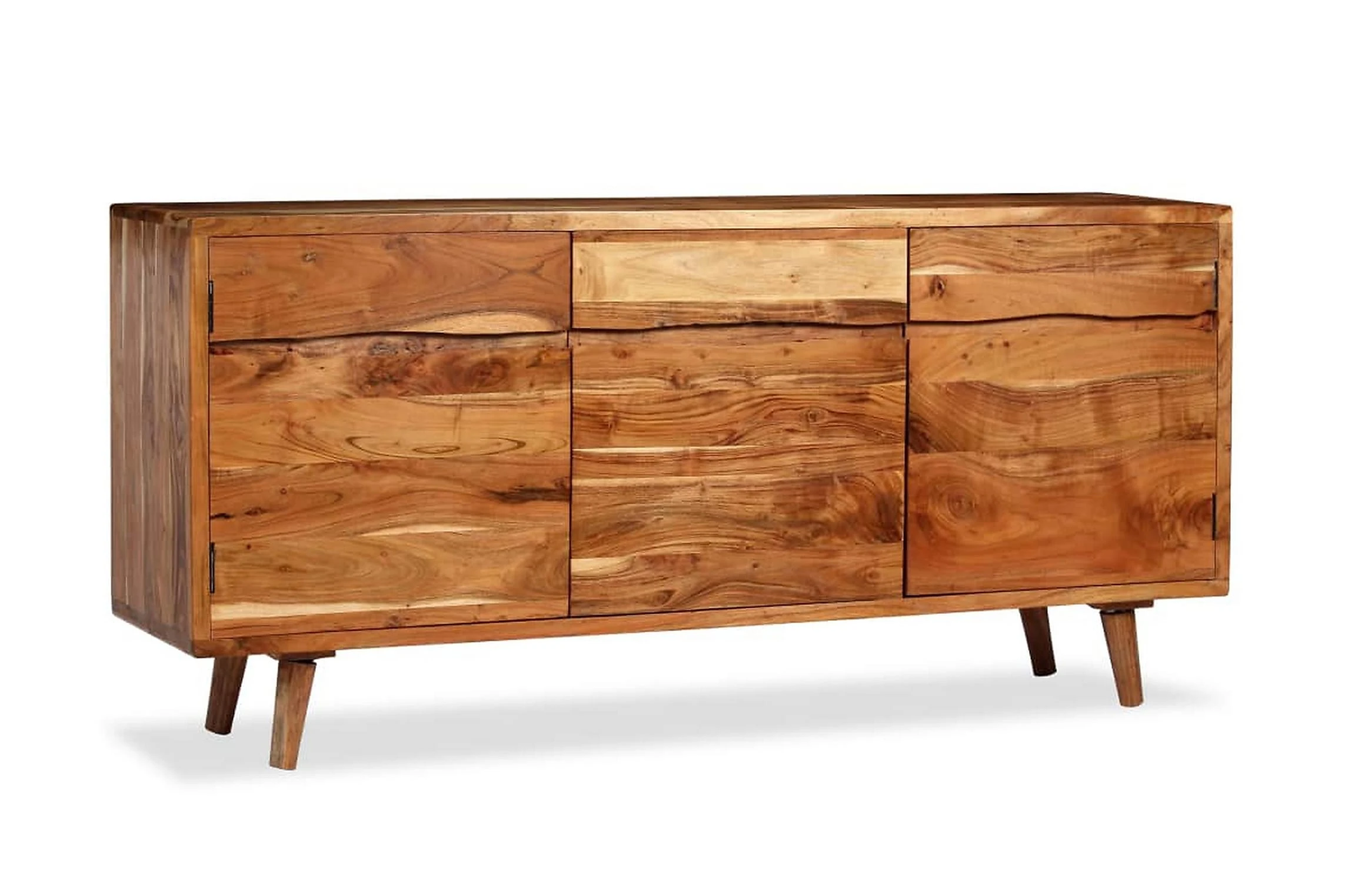 Skänken i trä utstrålar en rustik charm och blir ett fint tillägg i din inredning.