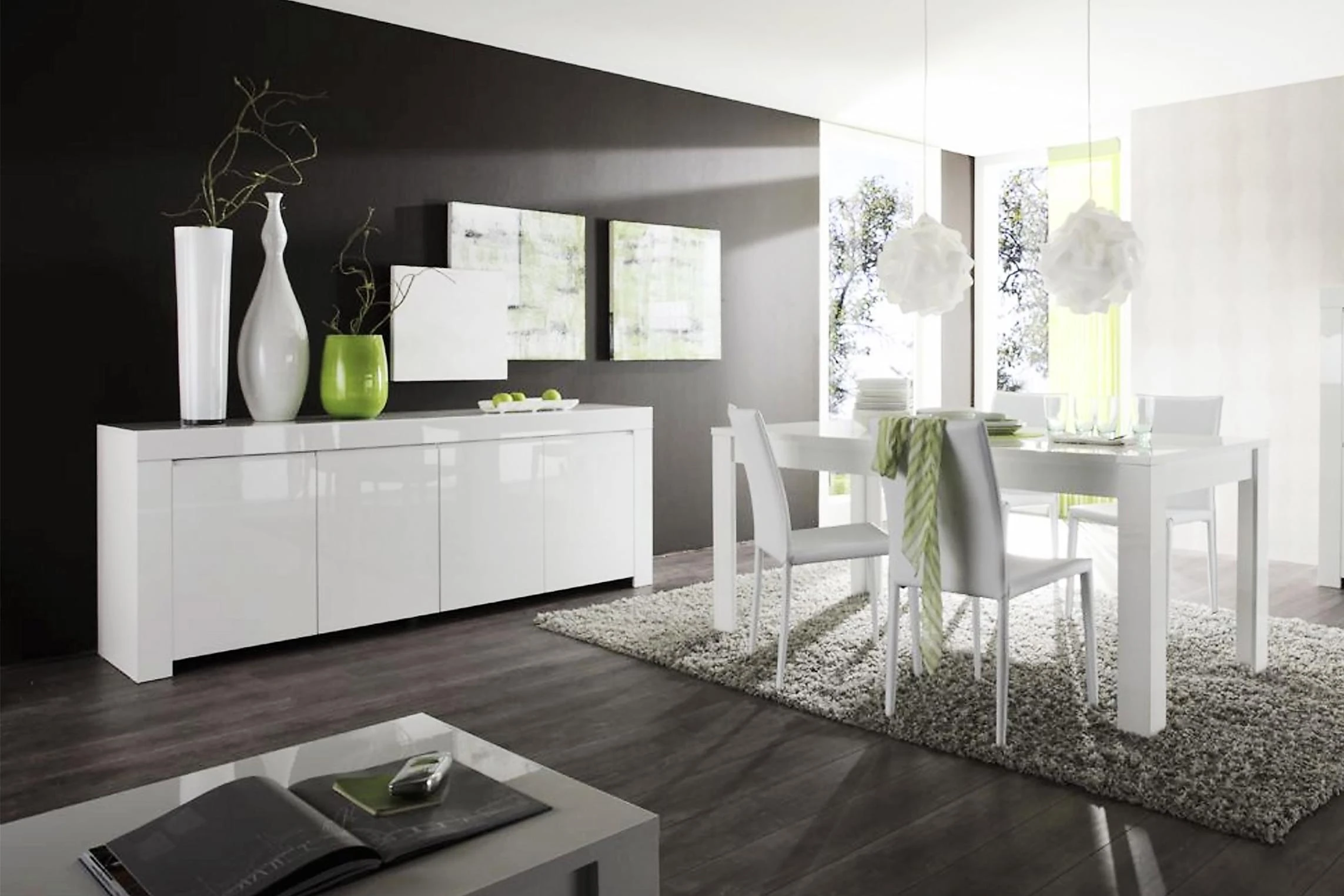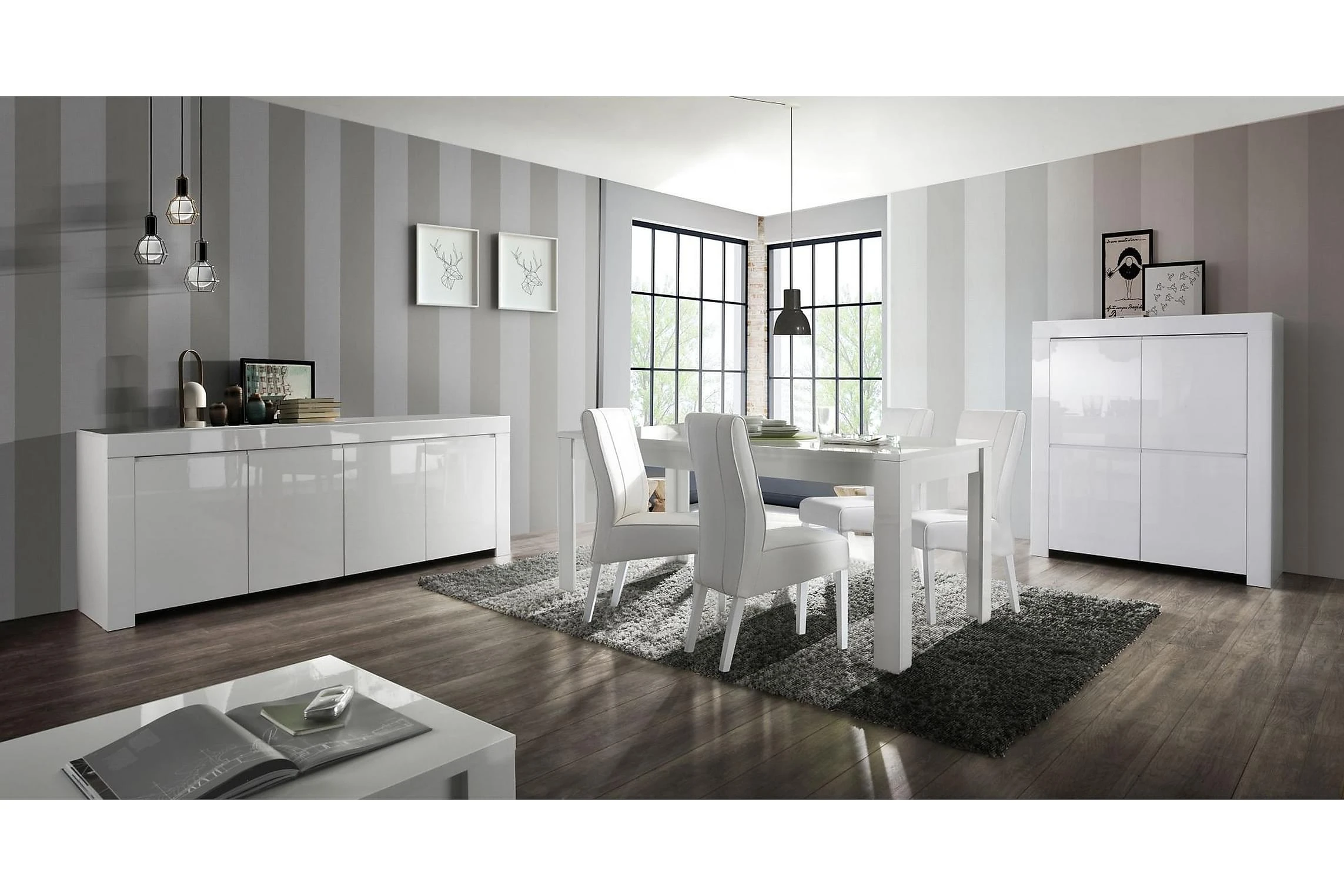 Salerno är en italiensktillverkad möbelserie för hela hemmet. Det gemensamma för möblerna är dess moderna design som kännetecknas av raka, rena linjer och vit eller grå högglanslack. Salerno sideboard med fyra rymliga skåp ger mycket förvaringsutrymmen för pengarna. Dekorera gärna avlastningsytan med fina inredningsdetaljer för att skapa en personlig prägel.
