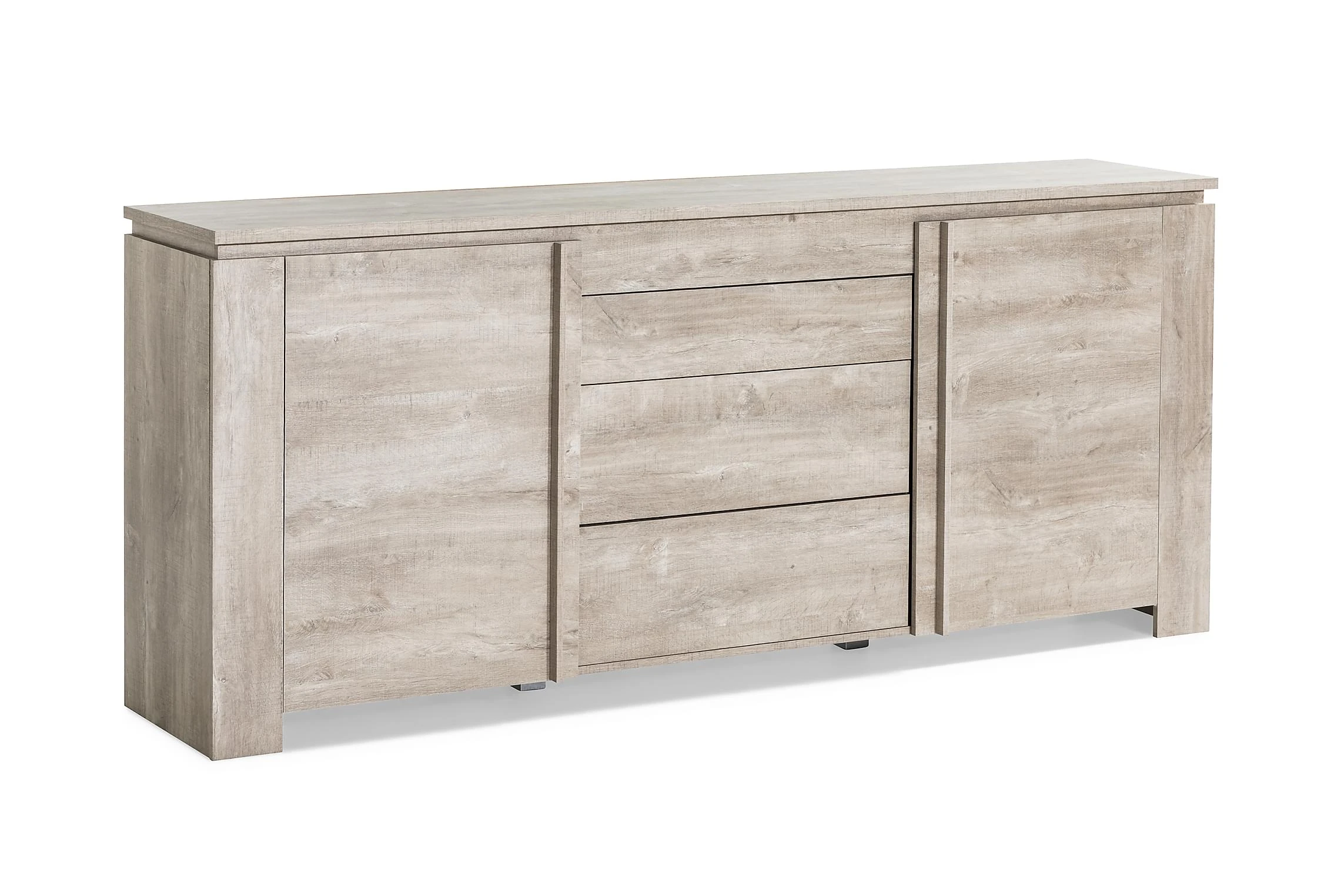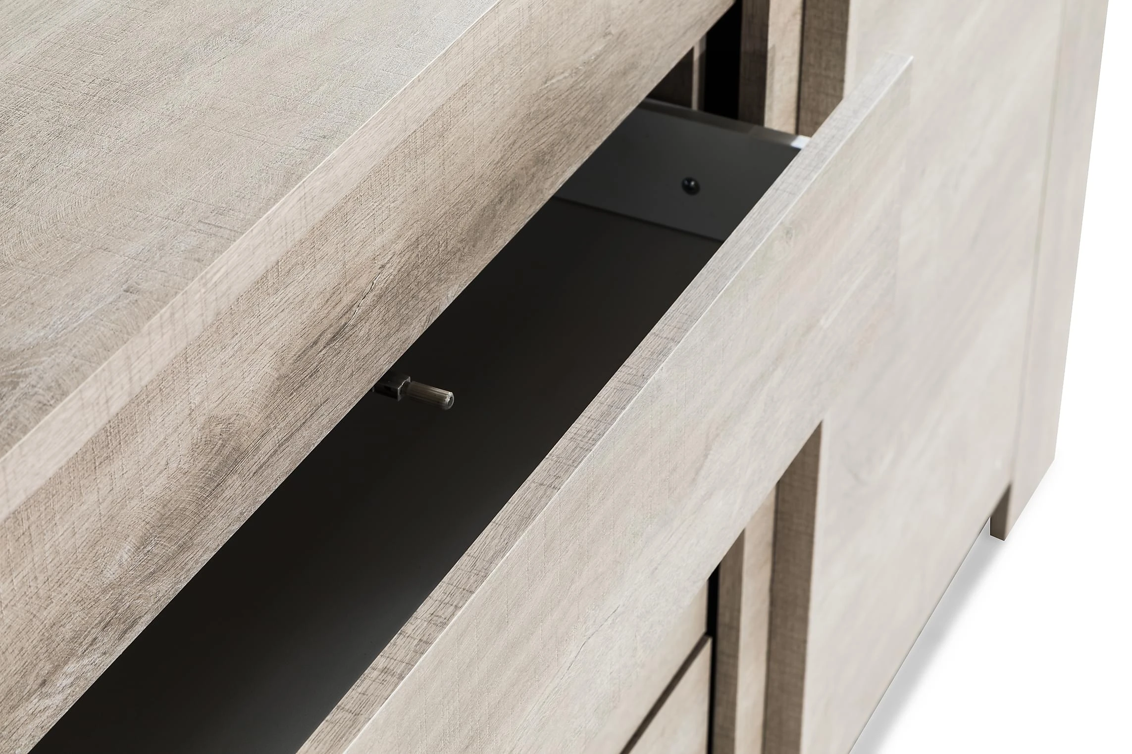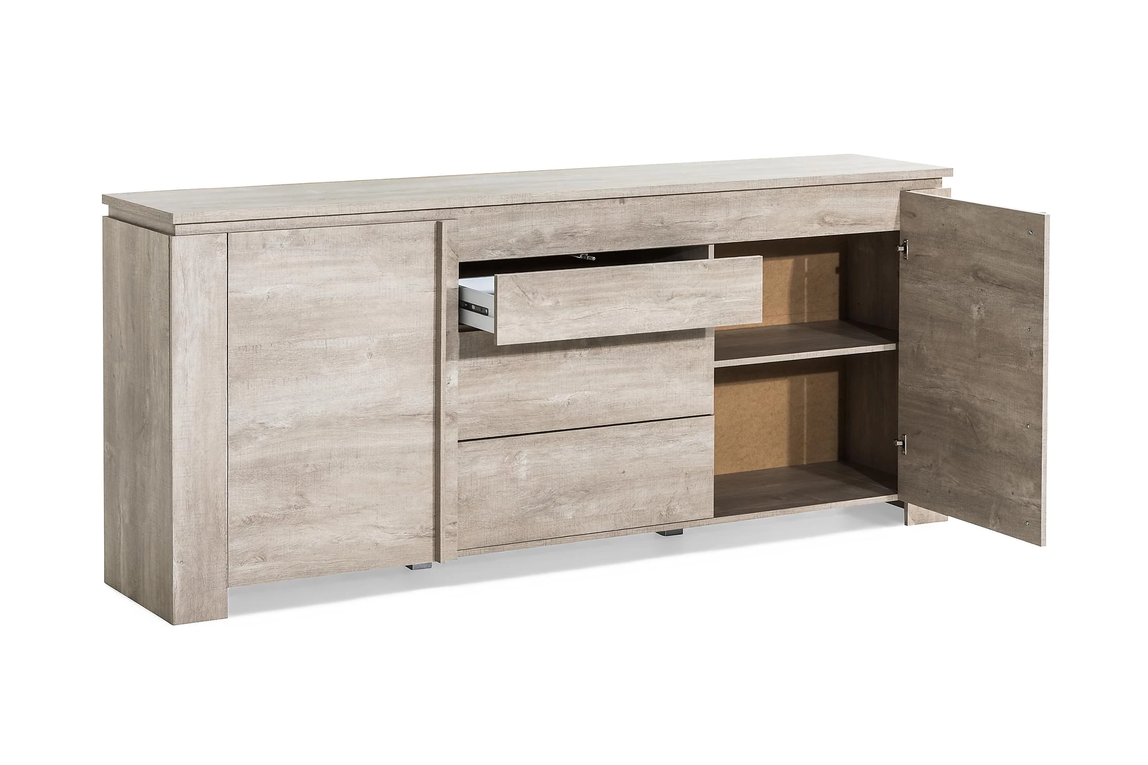 Skänken Barlow erbjuder gott om förvaringsutrymme och smarta designlösningar. För att hålla det schysst avskalade intrycket intakt så har lådorna (totalt tre) push-open funktion. Utöver lådorna finns två dörrar och ett ställbart hyllplan invändigt. Utnyttja den neutrala toningen och sätt din egen designprägel genom att kombinera skänken med det du gillar mest.