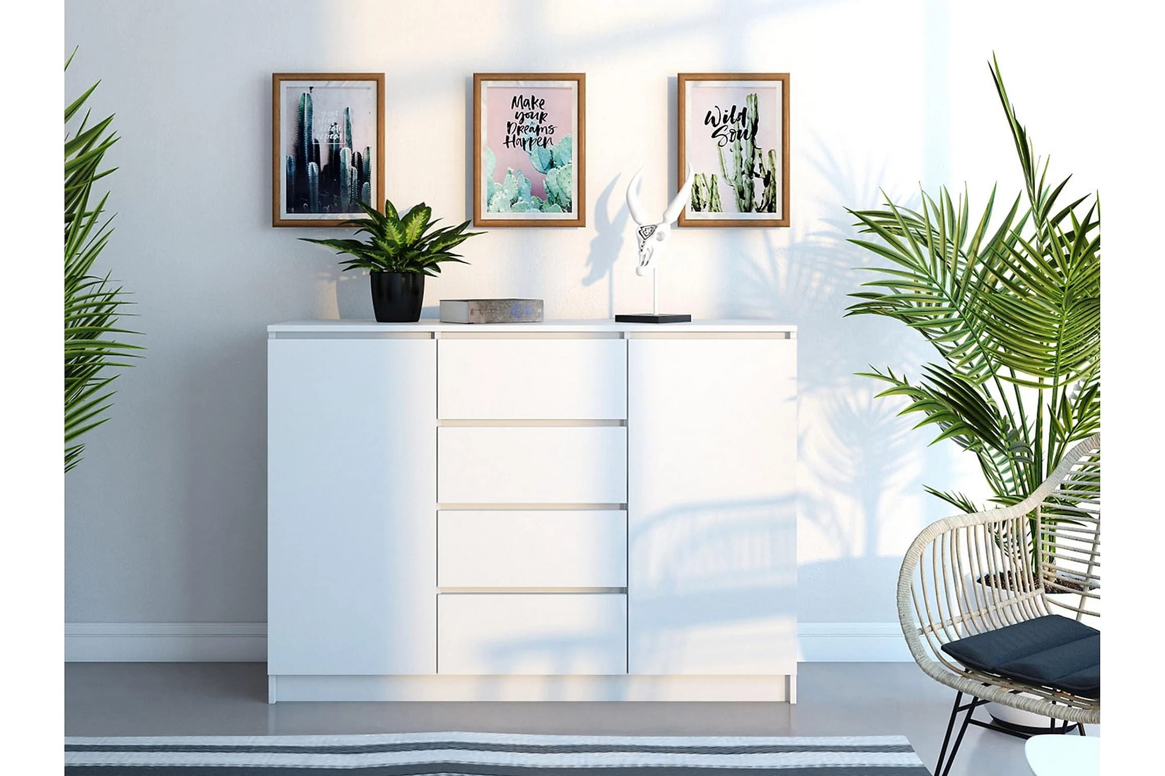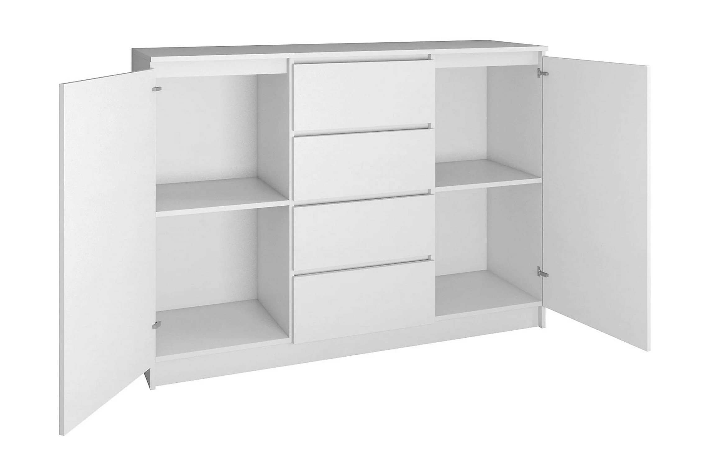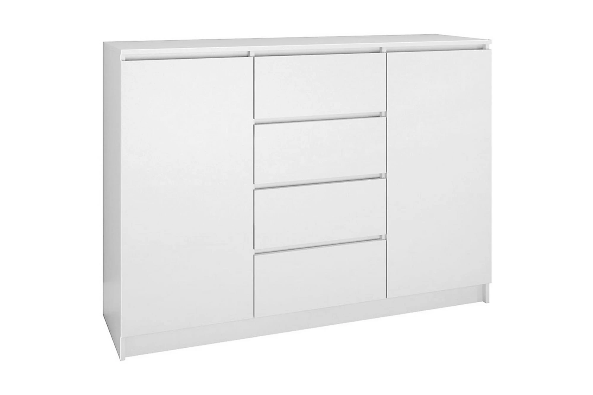 Det finns i universella färger, tack vare vilket det passar perfekt i ditt rum. Skänken är tillverkad av laminerad spånskiva, vilket garanterar hög kvalitet och säkerhet under användning.