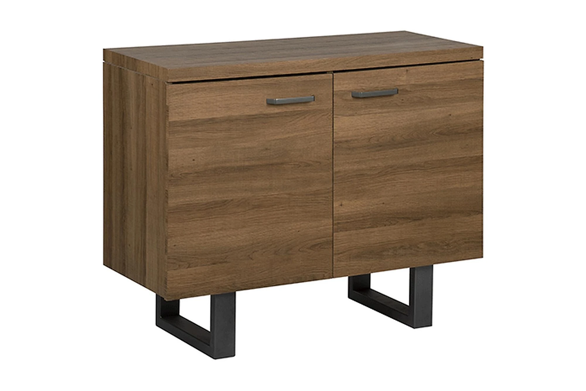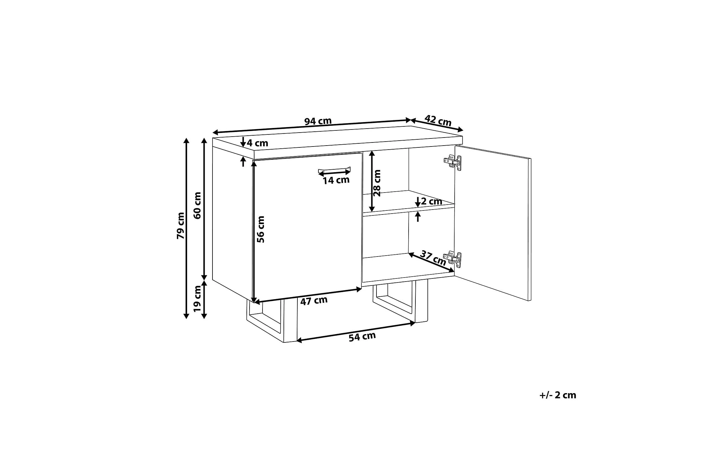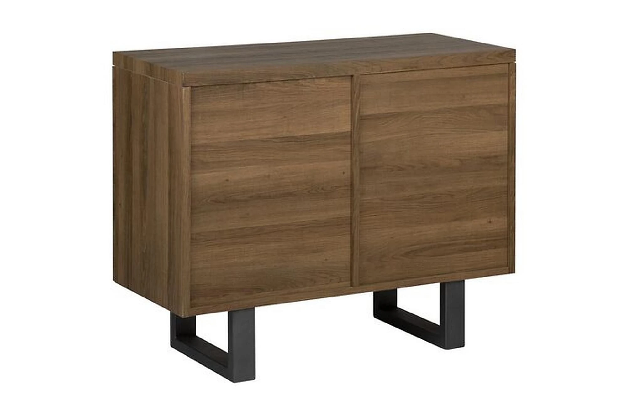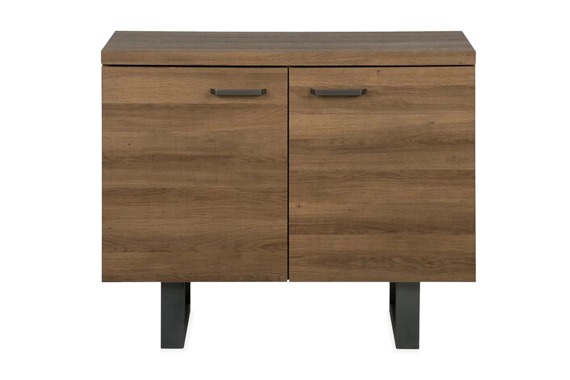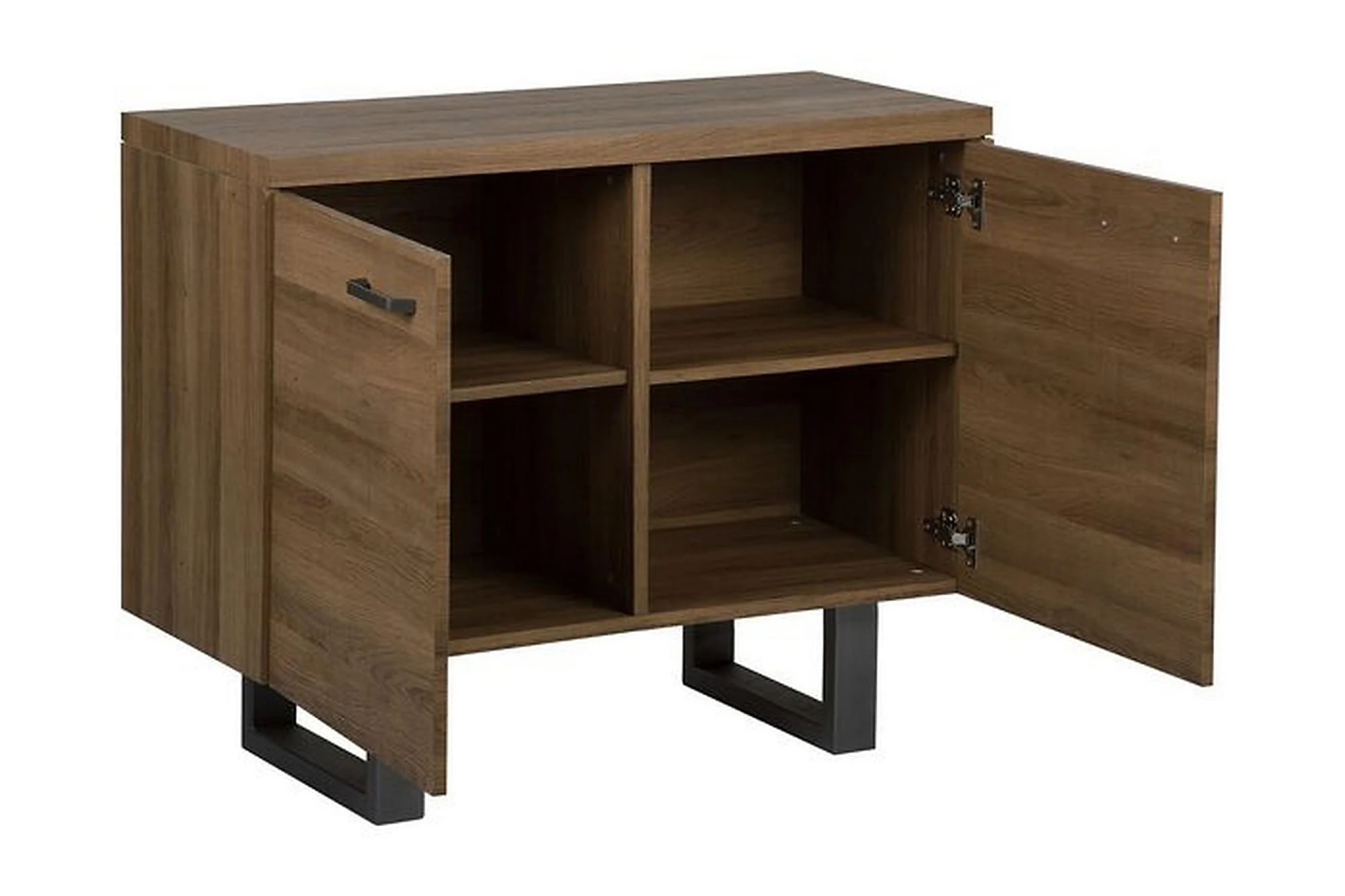 En praktisk skänk som passar perfekt till varje minimalistisk och industriell inredning. Den är tillverkad av högkvalitativ MDF som imiterar naturligt trä. Bakom två praktiska dörrar finns det fyra rymliga hyllor som enket rymmer olika tillbehör, böcker eller käder. Stabilitet garanteras av ben av metall. Material: MDF. Ytterligare material: metall. Vikt: 32 Montering: Fullständig montering krävs Vikt kapacitet: 45 Produktfördelar: Högkvalitativa material, Precis finish, Trendig industriell stil, Stabil och slitstark konstruktion, Gott utrymme för förvaring
