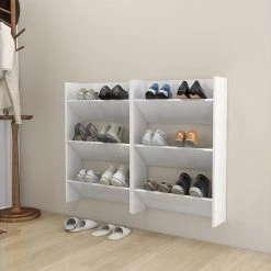 Be Basic Väggmonterat Skoställ 2 St Vit Högglans 80x18x60 Cm Spånskiv