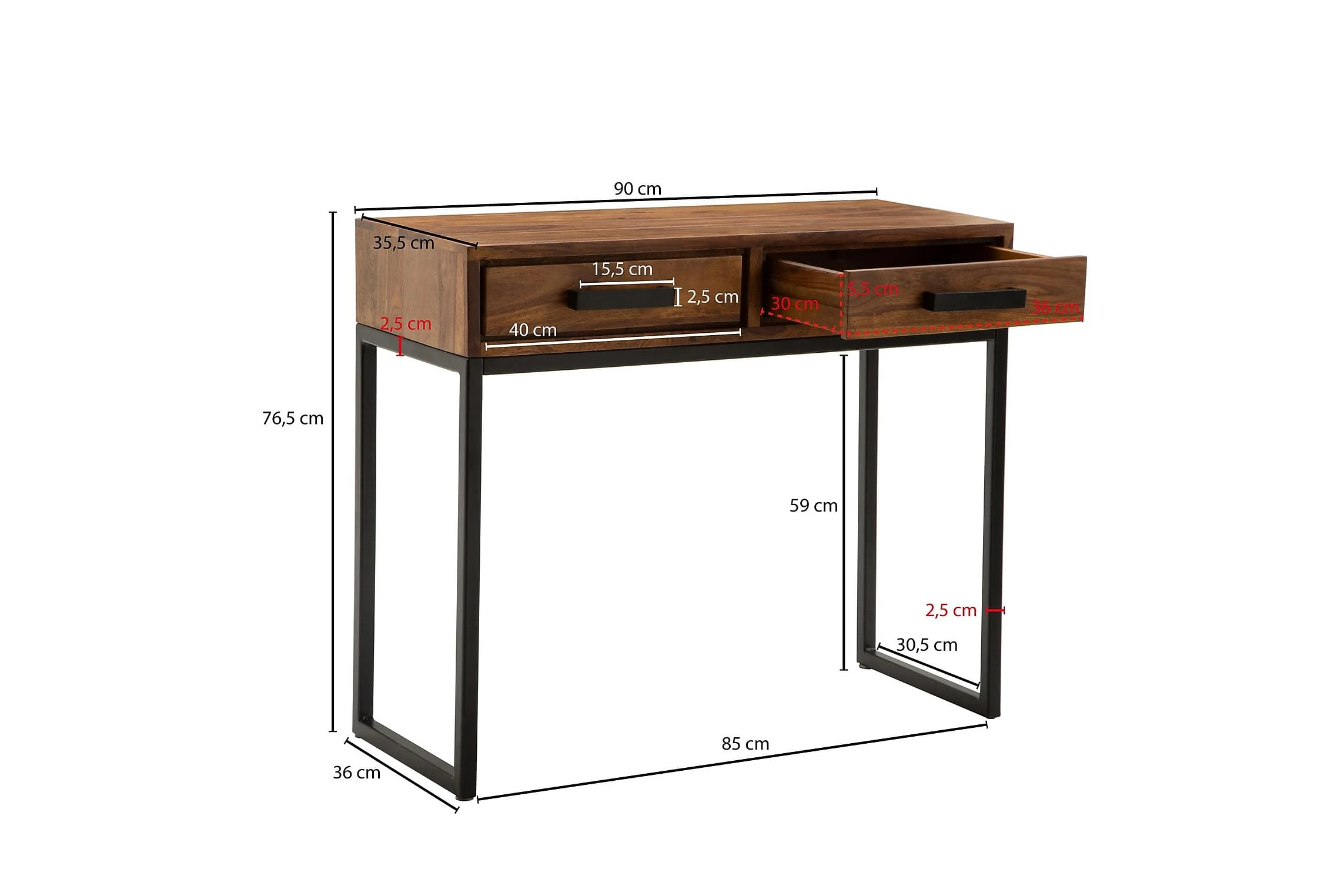 Mått mellan ben – kortsida: 30.5